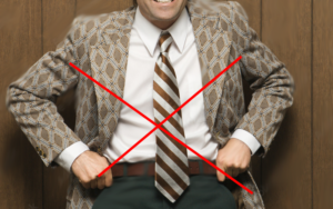 この反対にとてもダサくなってしまう動作が、パンツをウエストまで引っ張り上げてしまう動作です。
