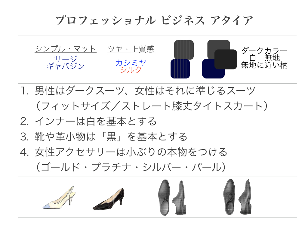 あなたがどんな仕事の方であれ、またどんなブランディングをしているのであれ、一般的に「プロフェッショナルさを感じさせる服装」がどのようなものであるか「アーキタイプ(典型)」は知っておいてください。