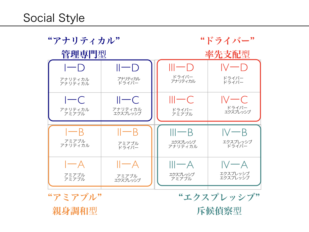 以上がソーシャルスタイルおよび各タイプの説明です。