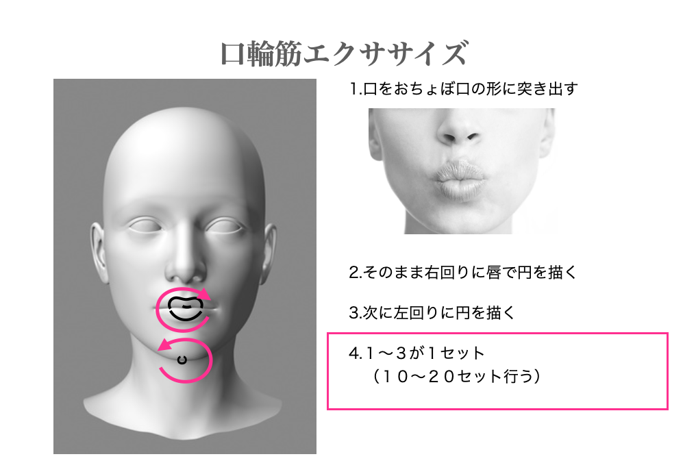 まず、基本的な口輪筋のエクササイズで口の周りを柔軟にしてください。
