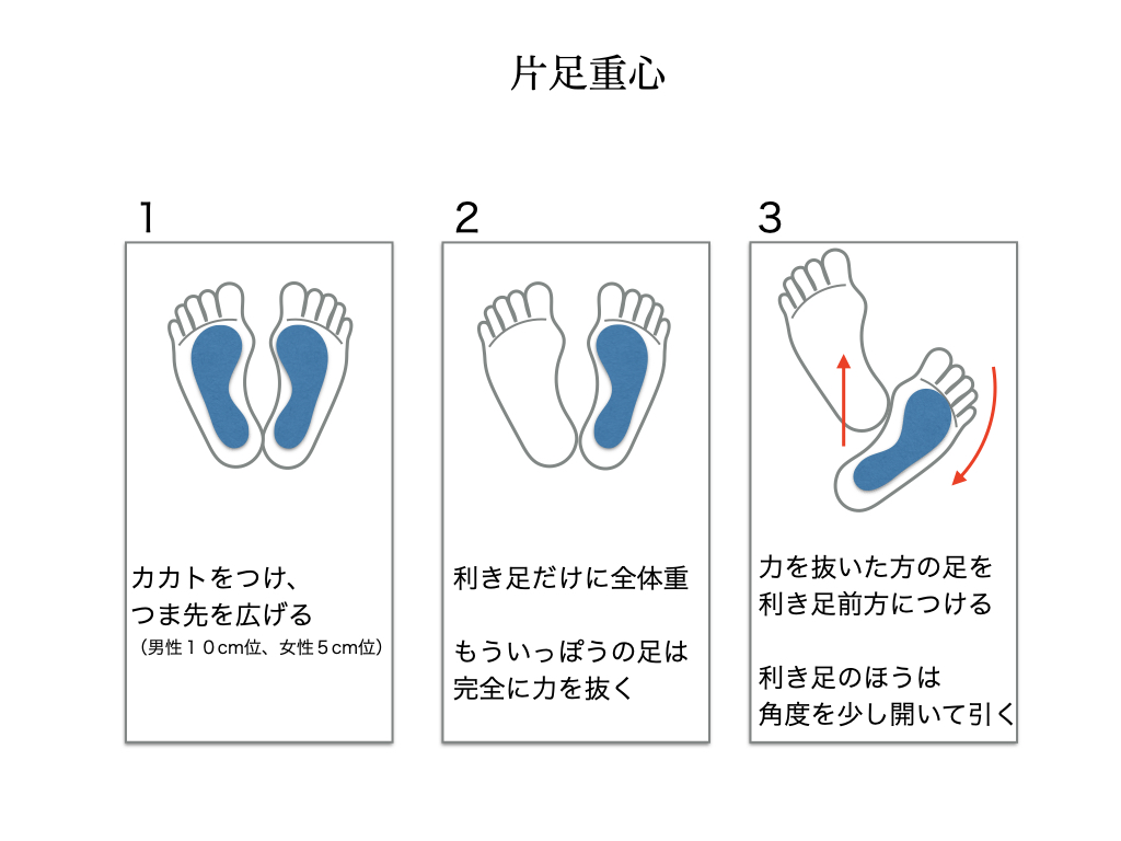 (もういっぽうの足は地面から離せるようになるくらいに完全に力を抜く)