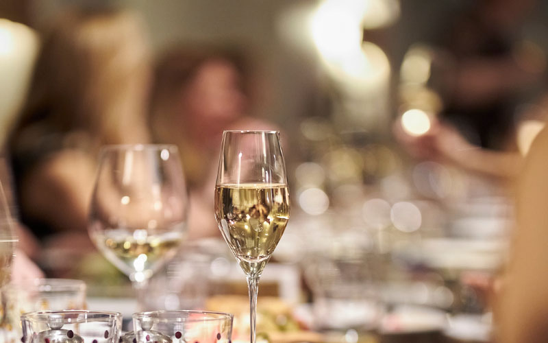 ビールなどが入ったグラスをカチンカチンと重ね合わせて親睦をはかるのも「お座敷マナー」「宴会マナー」では奨励されることです。しかし、国際基準のマナーは「グラスをぶつけてはいけない」とされます。これも「質の高い什器を傷つけない」という目的からです。ワインなどを注ぐ薄いグラスはちょっとぶつけただけで割れる可能性が高いものですから、ぶつけることは決してしません。レストランなどで乾杯する時は、ただ目の高さに上げて目配せをするだけです。