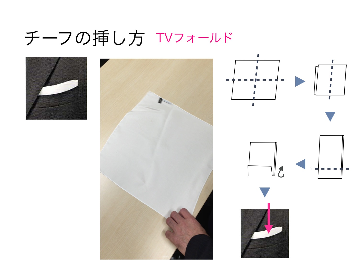 1.日常にビジネスに清潔感があり、きりっとした味を出す「TVフォールド」